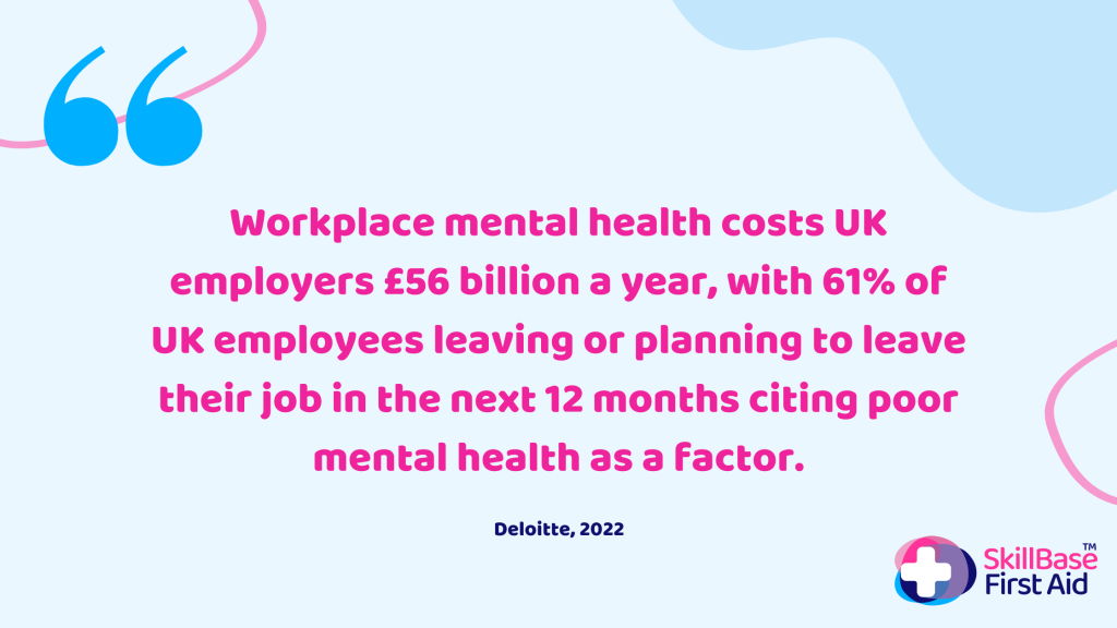 Deloitte stated in 2022 that the workplace mental health costs to UK employers was £56 billion a year, with 61% of UK employees leaving or planning to leave their job in the next 12 months citing poor mental health as a factor*. This really isn’t surprising when the average person spends one third of their life at work, it is inevitable that all of that time affects our mental health. Line managers serve as the bridge between employees and upper management, playing a pivotal role in creating a positive workplace culture. As the first point of contact for many employees, they are well-positioned to notice changes in behaviour and performance that may indicate underlying mental health challenges.