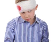 Young boy head bandage