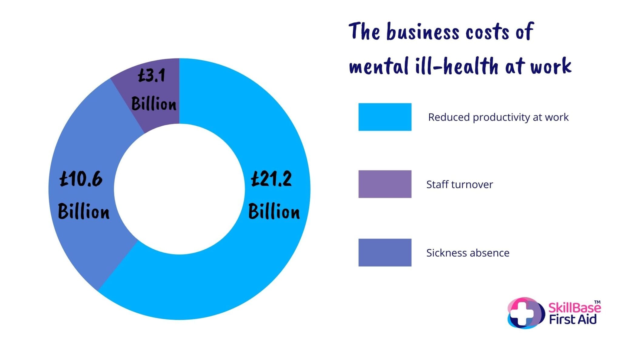 Unfortunately, we know that in 2018/19 stress, depression or anxiety accounted for 44% of all work-related ill health cases and 54% (that’s 72 million) of all working days lost due to ill health.(1) According to the Centre for Mental Health, this accounts for a financial loss to business estimated at £34.9 billion each year, and rising.(2)